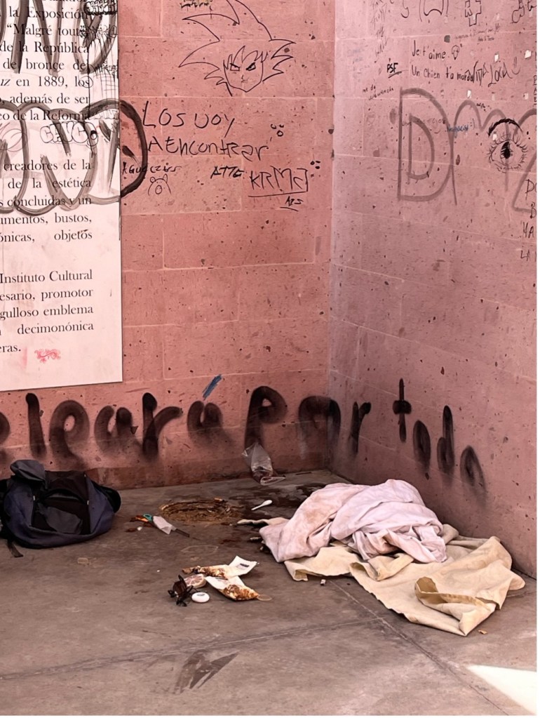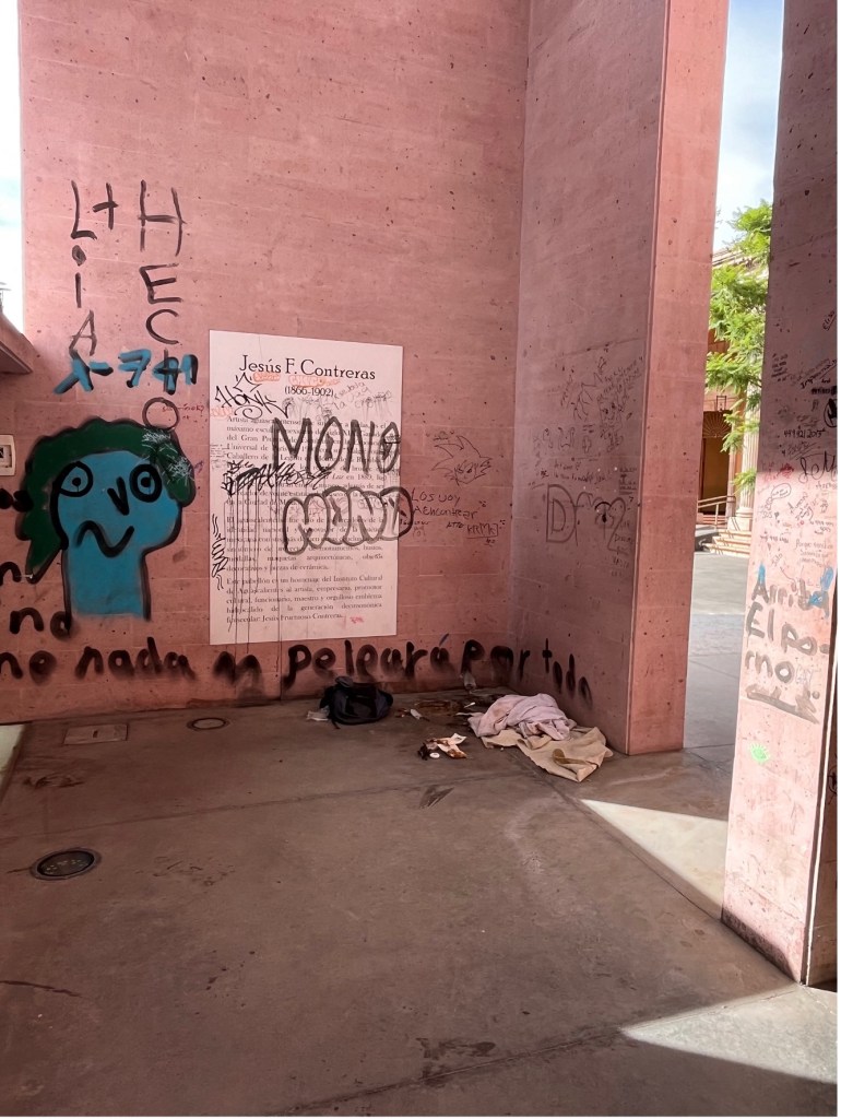 A pesar de todo, la sociedad se apropió del inmueble. Carlos Reyes Sahagún, en 2017, dijo: “la construcción adosada arbitrariamente al Museo de Aguascalientes fue encontrada por el sol del 30 de junio pasado brutalmente pintarrajeada.” Es la primera noticia que se tiene acerca de que se había vandalizado al mausoleo. No fue la última. En 2019, Cristian de Lira reportó[4] lo mismo. Todo indica, empero, que los encargados, después de advertir las intervenciones sociales al edificio, organizaban su saneamiento, como demuestran, por ejemplo, las imágenes[5] que en 2020 se publicaron.