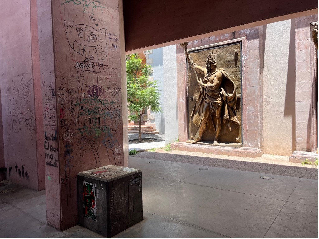 Si bien la concepción original ha quedado desdibujada, el cubo se podría aprovechar para algo. Lo digo así, en abstracto, porque uno quisiera que, por lo menos, fuera un lugar decoroso. Actualmente, lo único original ahí es el grafiti, aunque con expresiones más cercanas al corazón o al hígado que a la cabeza. Esté o no en lo cierto, los responsables de que esto se encuentre en tan lamentable estado, no son las personas que ahí se han manifestado, sino los funcionarios públicos de esta administración, quienes también han desatendido otros lugares culturalmente importantes.